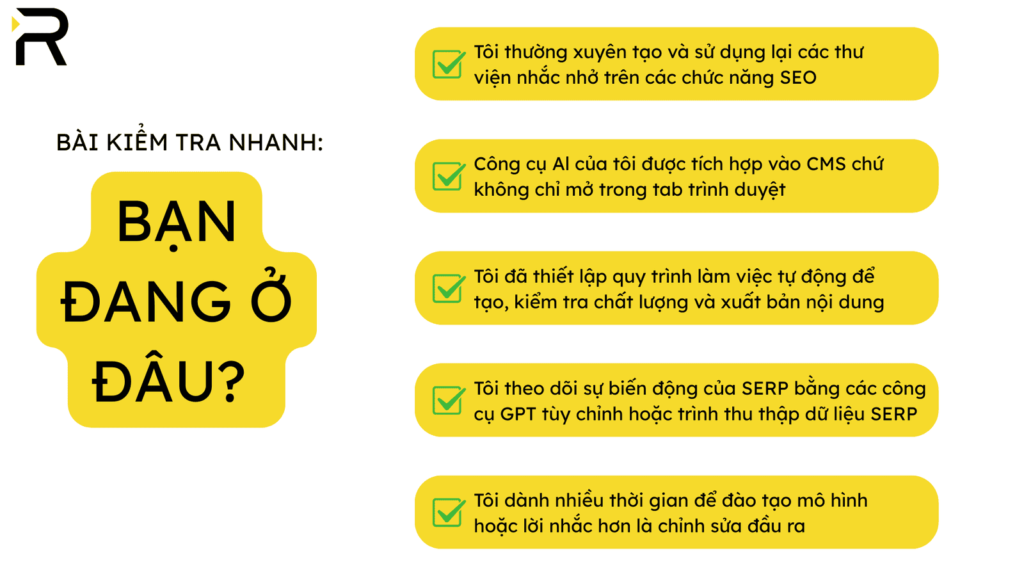 Nếu bạn trả lời “có” cho 4 câu hỏi trở lên, xin chúc mừng! Bạn đang hoạt động như một chuyên gia SEO thuần về AI.