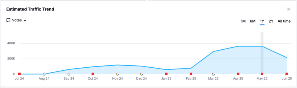 Kết quả: Lượng truy cập vào AI Overview tại Hoa Kỳ tăng 500% từ tháng 9 năm 2024 đến tháng 5 năm 2025, dựa trên dữ liệu AI Overview của Semrush.